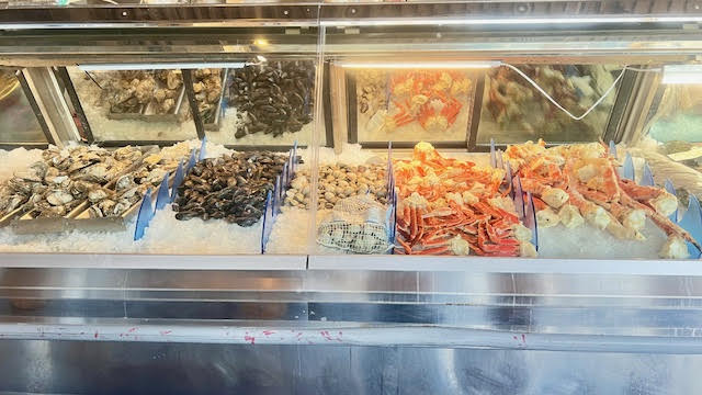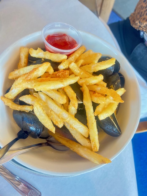 While waiting for our food, we chatted about this and that, I was looking at the fish counter and I shared a tidbit that an old gulf coast fisherman once told me and my daughter joked that the counter behind us was probably for show. Then a man came up to it and scooped up a bunch of muscles (what she had ordered) and tossed a couple and walked off to do his magic with muscles and we all laughed.