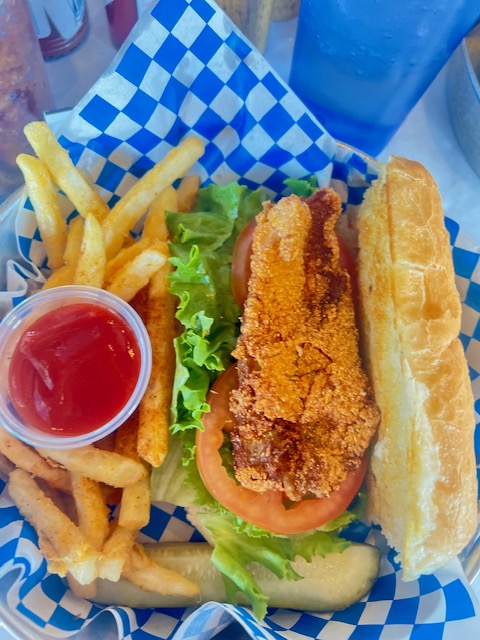 She did enjoy her mac and cheese and fries though, and the tomatoes from my catfish po’ boy. The food was beautiful and tasty. More than tasty, it was a hint of other places I have lived or visited. Bringing back fond memories of times with family and or friends.