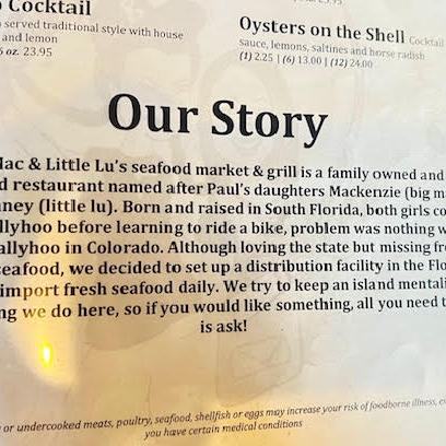 Back to this adventure! Big Mac and Little Lu’s did not disappoint. Having lived in a coastal adjacent area for over twenty years, I didn’t have high expectations for seafood, because we are in a landlocked state but, when I walked in, I felt as if I were in one of those little seafood shops and restaurants at the beach. However, outside those windows, you saw mountains instead of seagulls swooping down and trying to steal food for outdoor diners. My son in love couldn’t get over the juxtaposition of the 2 sites, mountains outside, but mounted swordfish and marlin lining the window..