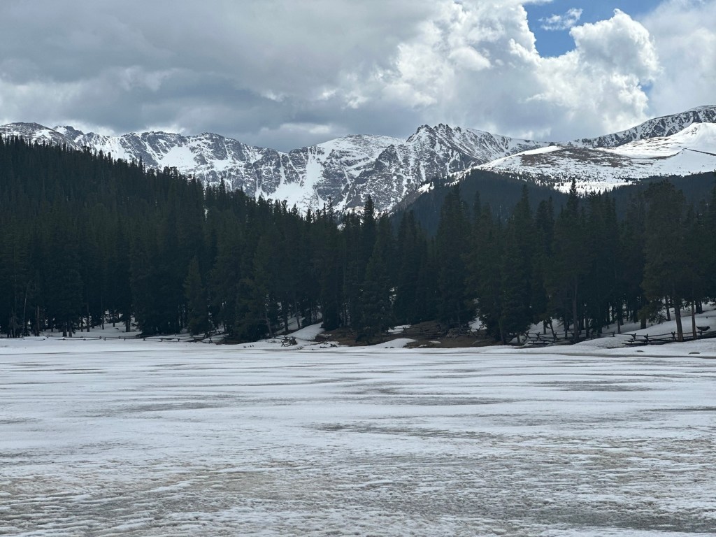After our beautiful experience looking out from these views, we decided to try Mt. Blue Sky, maybe it wasn’t really closed, but alas it was. The rest of the drive was spectacular, seeing Echo Lake and then a drive on the Scenic Byway to head back home. We climbed a bit driving, lots of beautiful view and still quite a bit of snow.