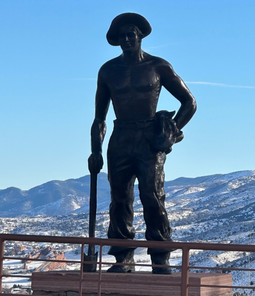 In our exploring, we discovered some parts of Red Rocks that I had not seen before. And a sculpture paying homage to the miners and builders.