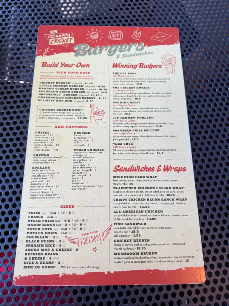 We went to Cherry Cricket in Littleton, CO. And it was better than I expected. It’s a very cute and retro-ish joint.