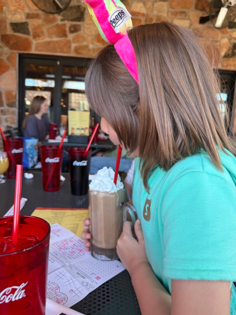 The menu offered a lot of great options, I got the Colorado Bison Burger with Swiss cheese and avocado. Delicious! My granddaughter got a chocolate shake with her lunch and was thrilled with the size!