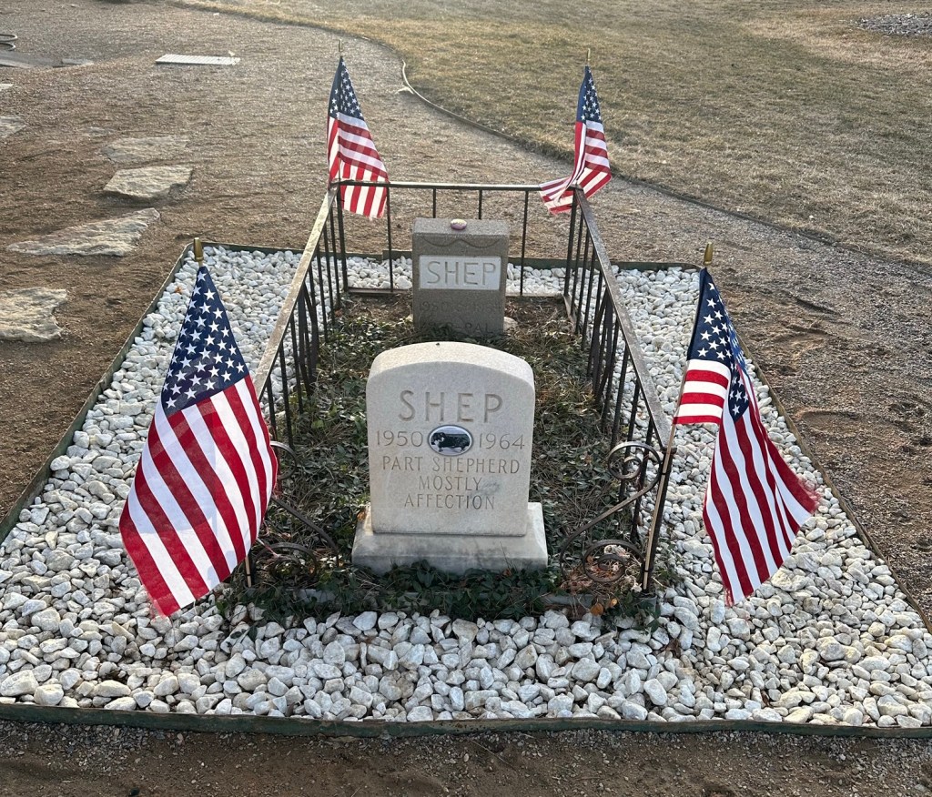 Back in the early 1950s, during the construction of the Boulder Denver turnpike, a dog wandered onto the construction site and soon became the unofficial mascot of the project. He spent years at the tollbooth on US 36, accepting tolls and treats from drivers. The Colorado Department of Transportation adopted Shep as their mascot too and he held that position until his death in 1964. He was buried by the side of the road. Someone tended his grave and added a little fence to the modest headstone. Colorado built up around his grave and his area eventually became a park with a small museum near by.